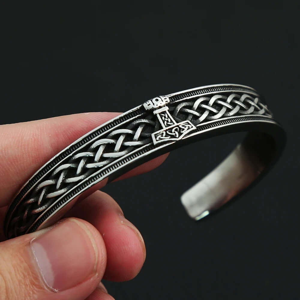 Adorn your arm with this iconic piece, and feel the weight of history resonate through every inch of its meticulously sculpted design. This arm ring embodies the legendary might of Mjolnir, the hammer wielded by Thor, god of thunder and lightning, the intricately detailed hammerhead, reminiscent of Thor's formidable weapon, commands attention and exudes an aura of authority and strength.
