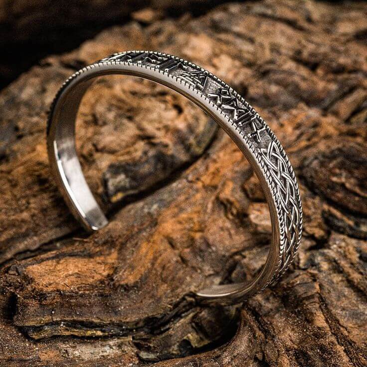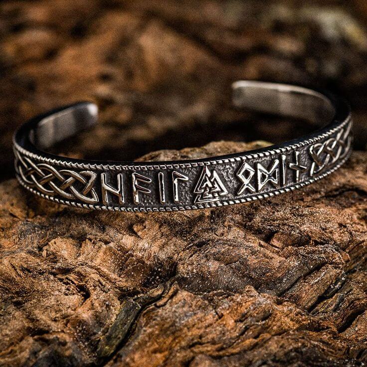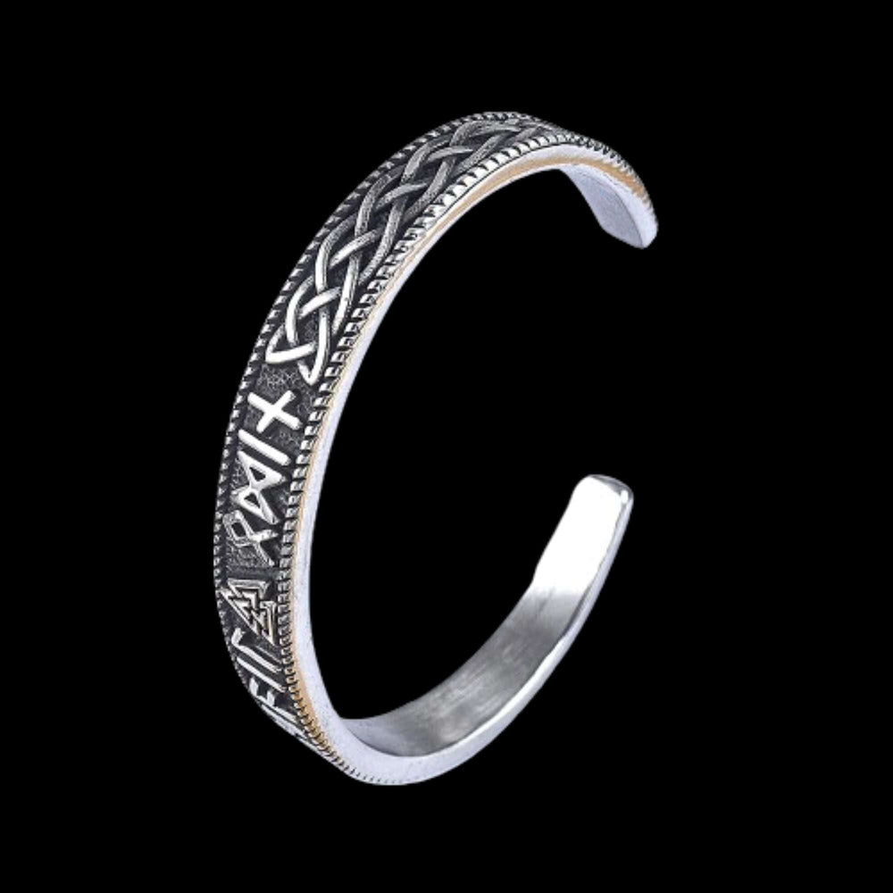This arm ring connects you to the mystical Viking world with the Valknut symbol, representing Odin and fate, and adorned with ancient Norse runes. Wear it as a symbol of your courage and resilience.