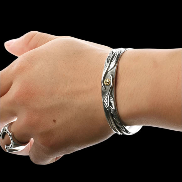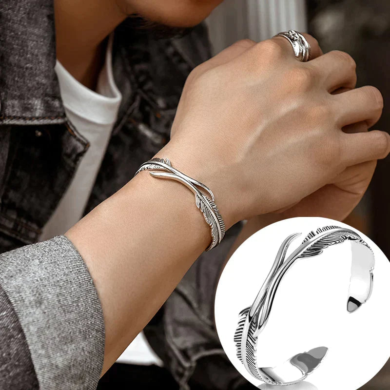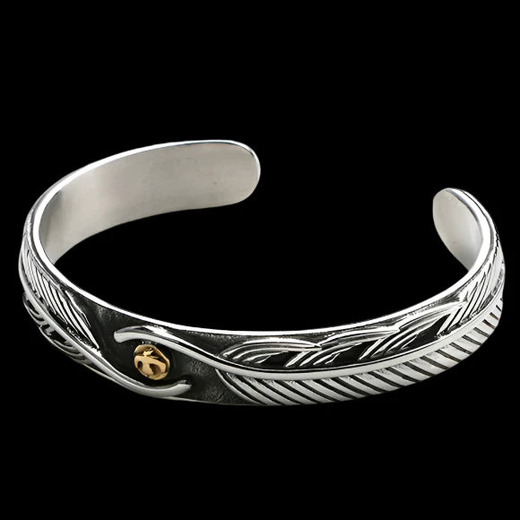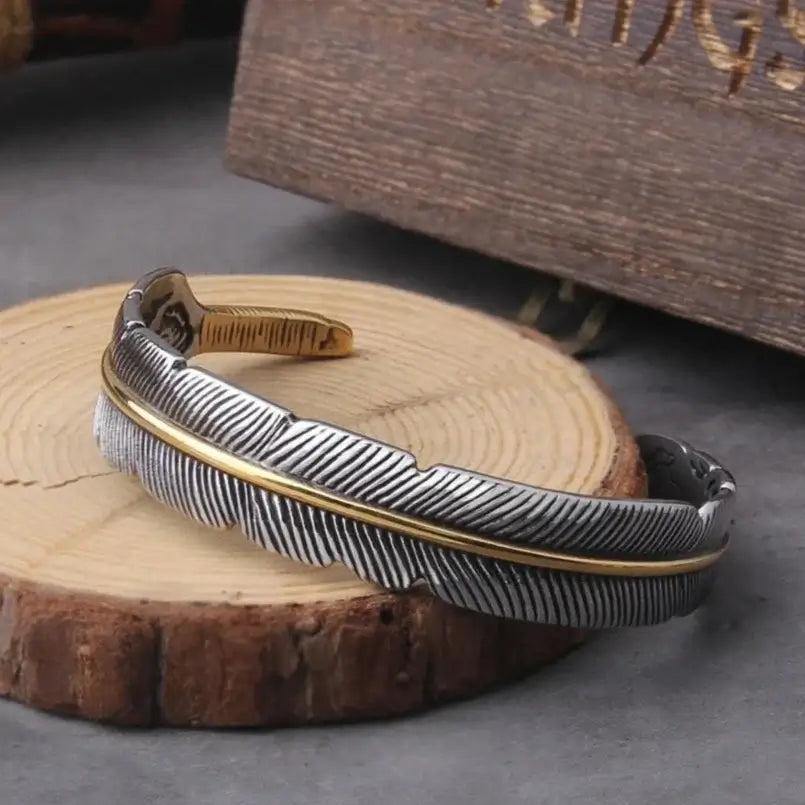 Soar into the mystical realm of Norse mythology with our Ravens Feather Cuff Bracelet. Inspired by the ravens Huginn and Muninn, Odin's faithful companions, this stunning bracelet features intricately detailed raven feathers. Crafted from high-quality stainless steel, the cuff design combines rugged authenticity with elegant sophistication. Wear it as a symbol of wisdom, guidance, and the spirit of the Viking warrior.