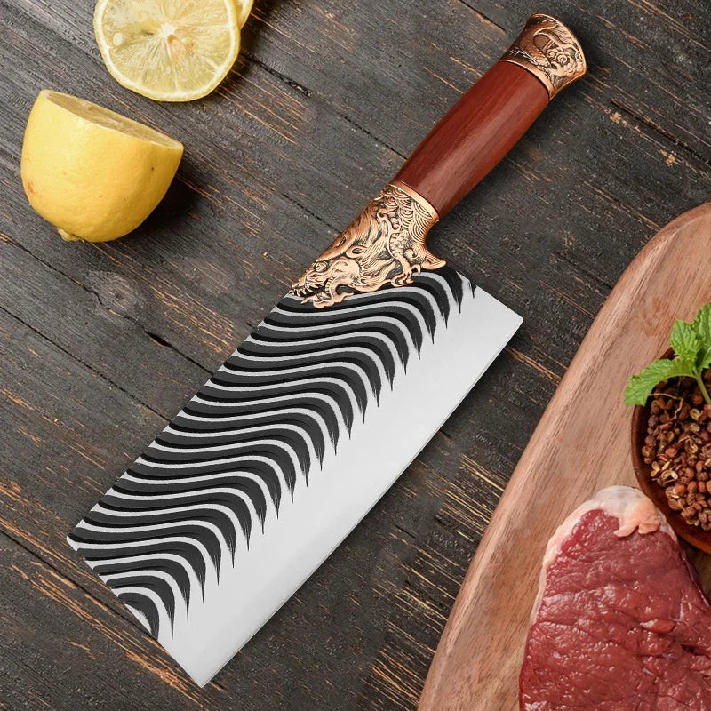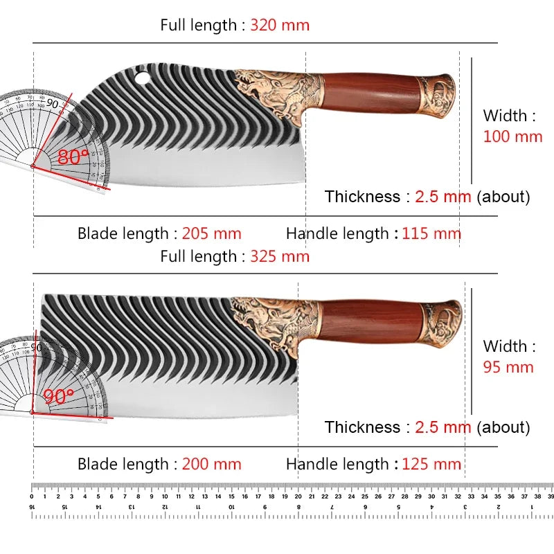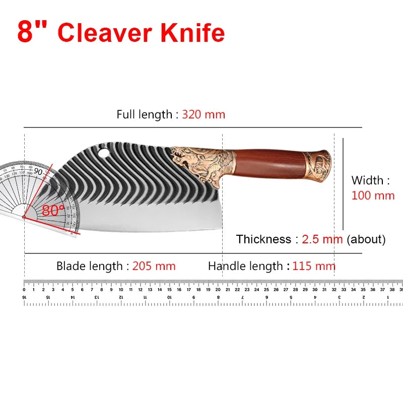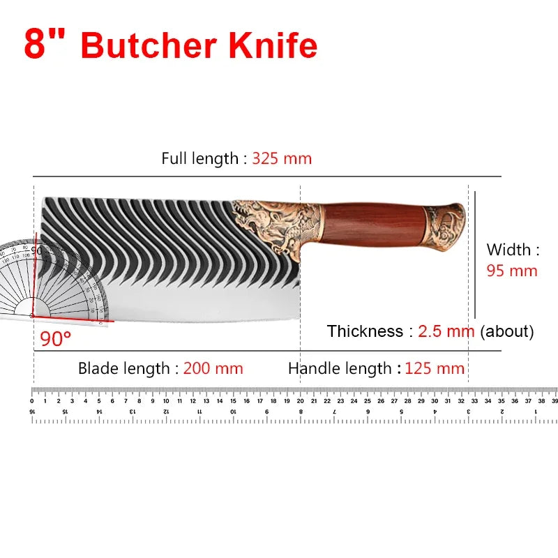 - 8-Inch Cleaver and Butcher Knife Combo: Perfect for a variety of kitchen tasks, from heavy-duty meat cutting to delicate vegetable preparation.