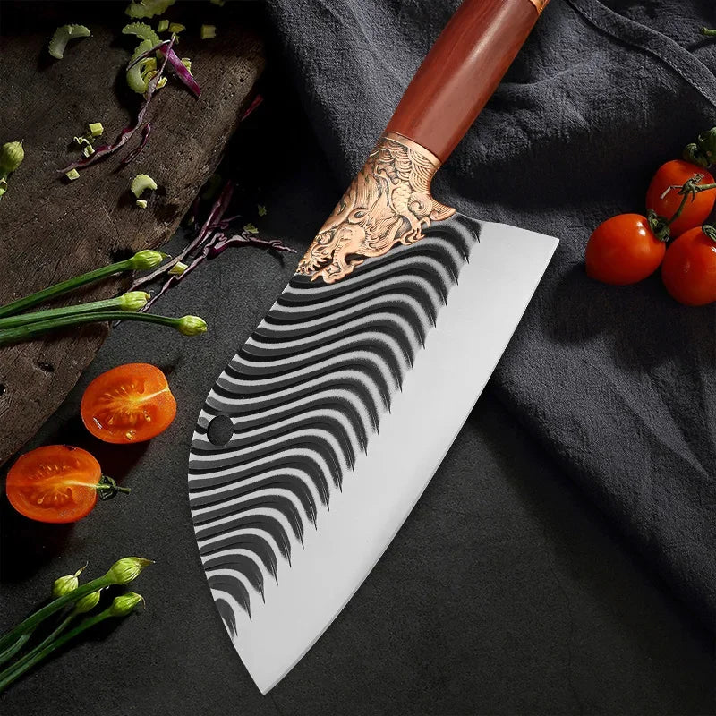 Transform your cooking experience with The Corpse Gnawer Kitchen Knife. Whether you’re carving through thick cuts of meat or slicing vegetables with finesse, this cleaver and butcher knife offers unparalleled performance. Designed with a unique aesthetic and forged for ultimate durability, it’s the perfect companion for any culinary enthusiast.