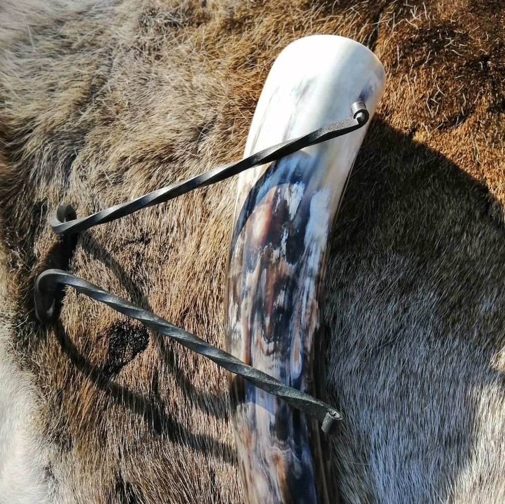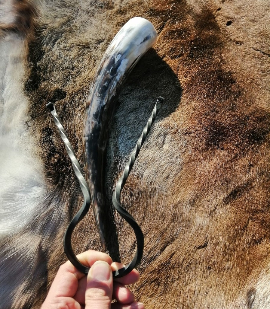 Display your drinking horn with pride using our Hand Forged Horn Stand. This sturdy stand is meticulously hand-forged from iron, ensuring both durability and a timeless, rustic aesthetic. Designed to accommodate horns ranging from 0.2 liters to 0.7 liters, it provides a secure and stylish resting place for your cherished horn.