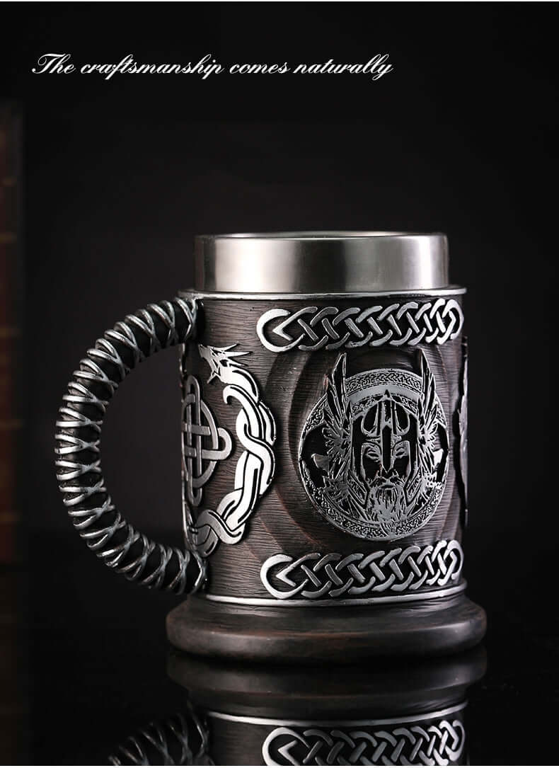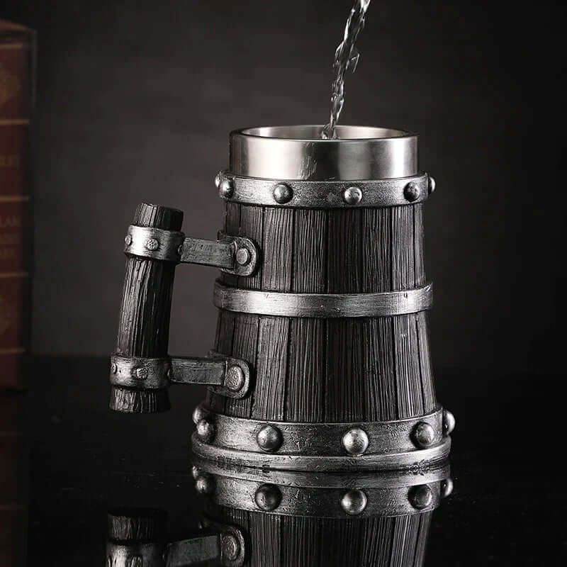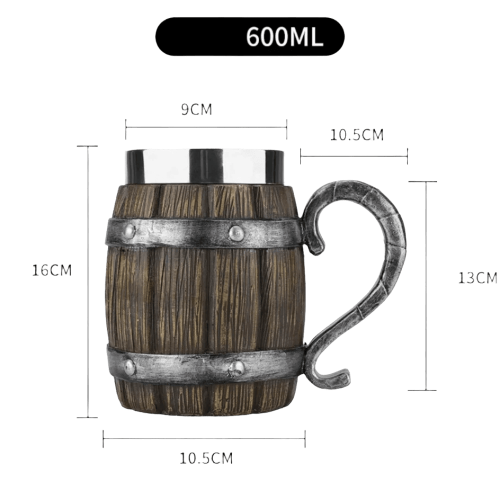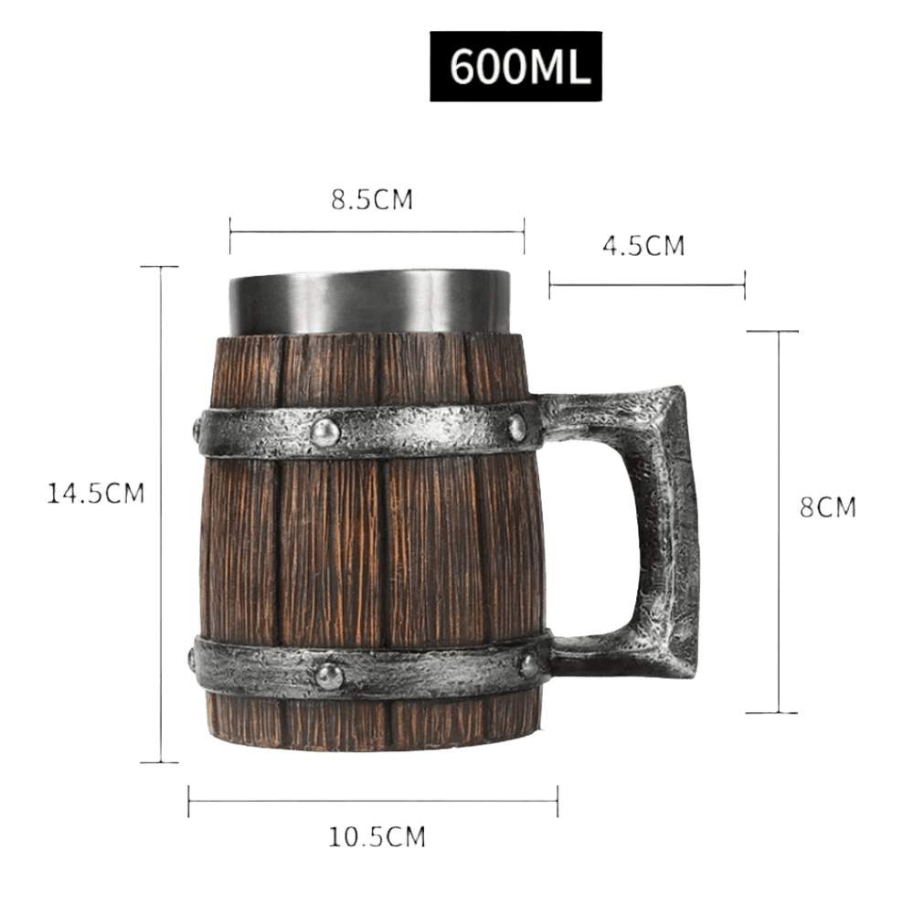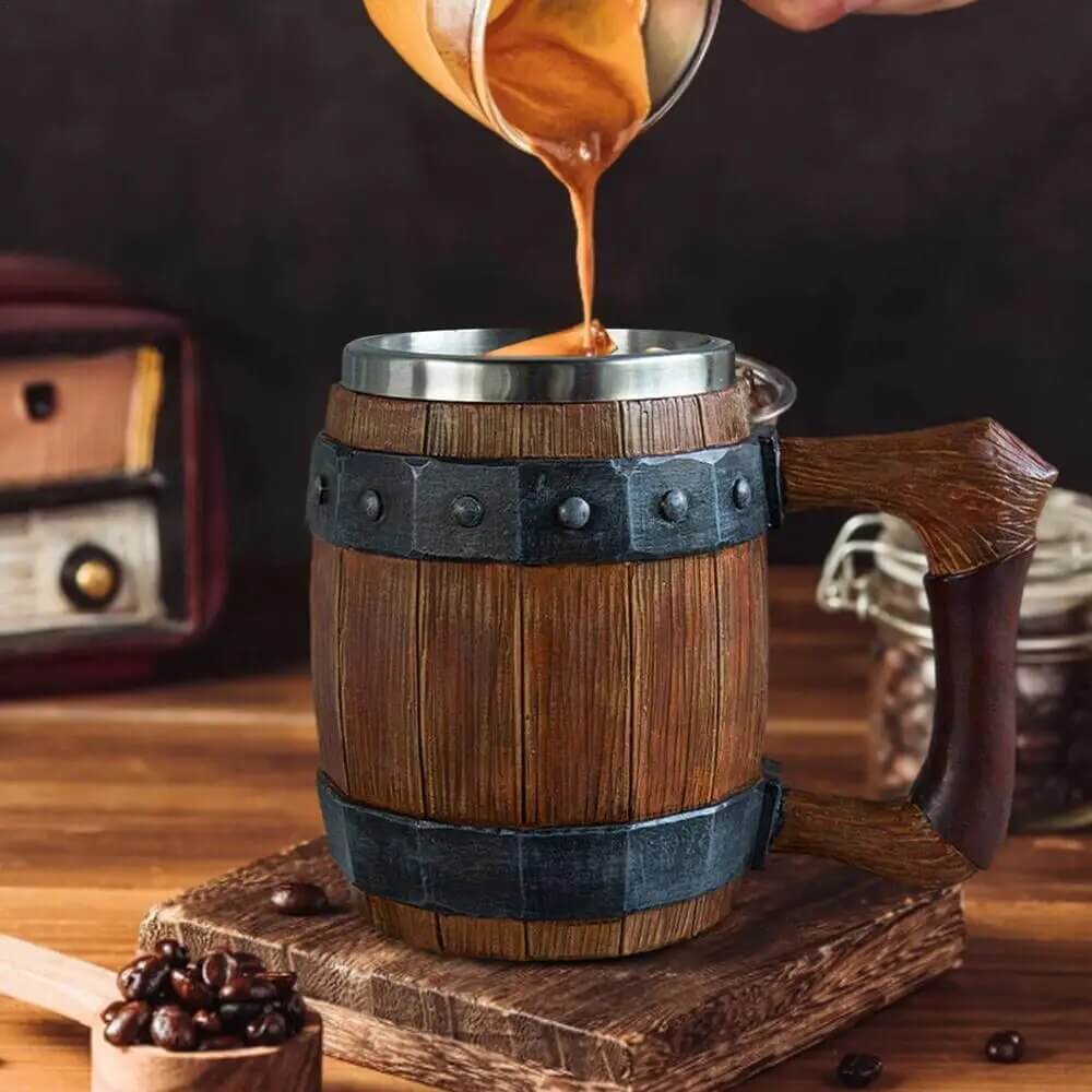 Raise your spirits with our Viking-Style Wood Beer Mug, as if toasting in the halls of Valhalla! Each mug is uniquely handcrafted from high-grade resin, featuring a food-grade stainless steel interior, and a mid-band that boasts a hammered look, resembling artifacts from the Viking era.