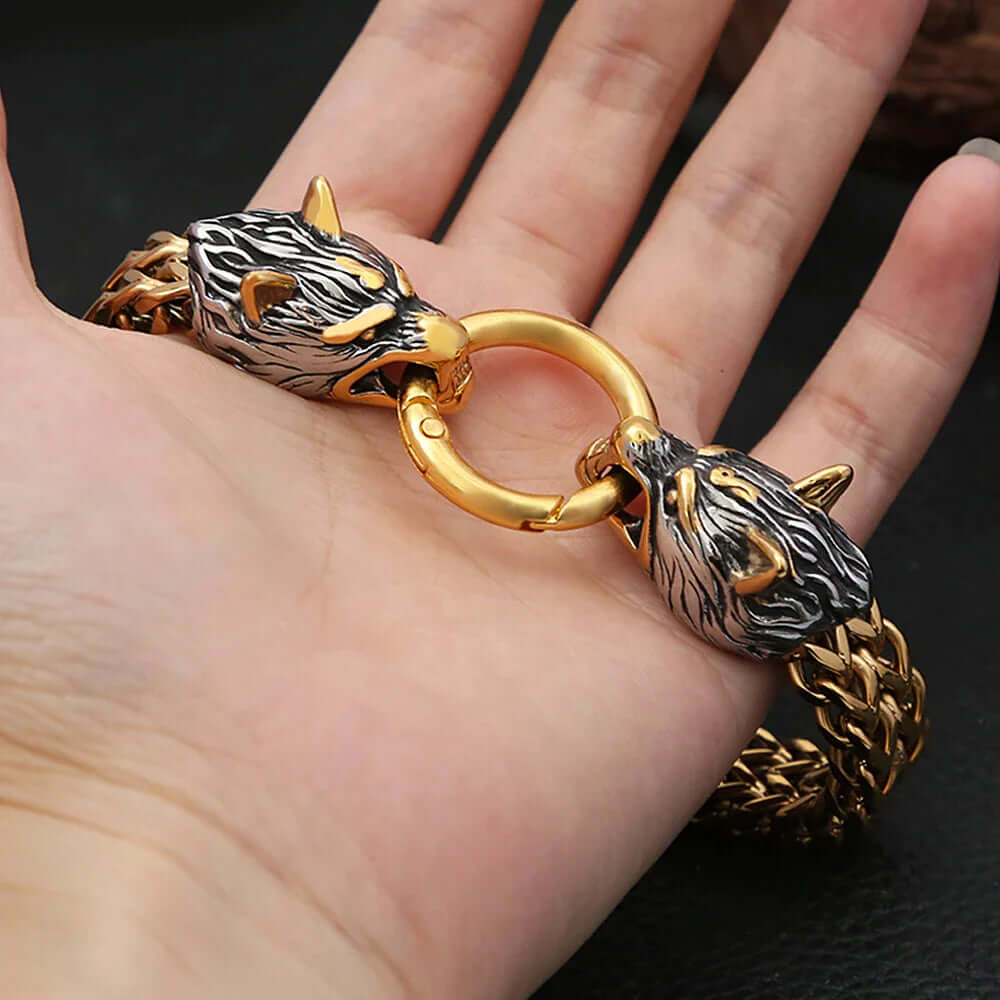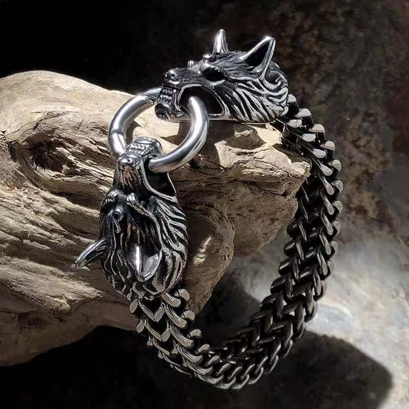 • Intricate Wolf Head Design: Meticulously crafted, each bracelet features an intricate wolf head design capturing Fenrir's fearsome presence.