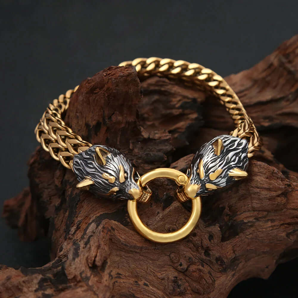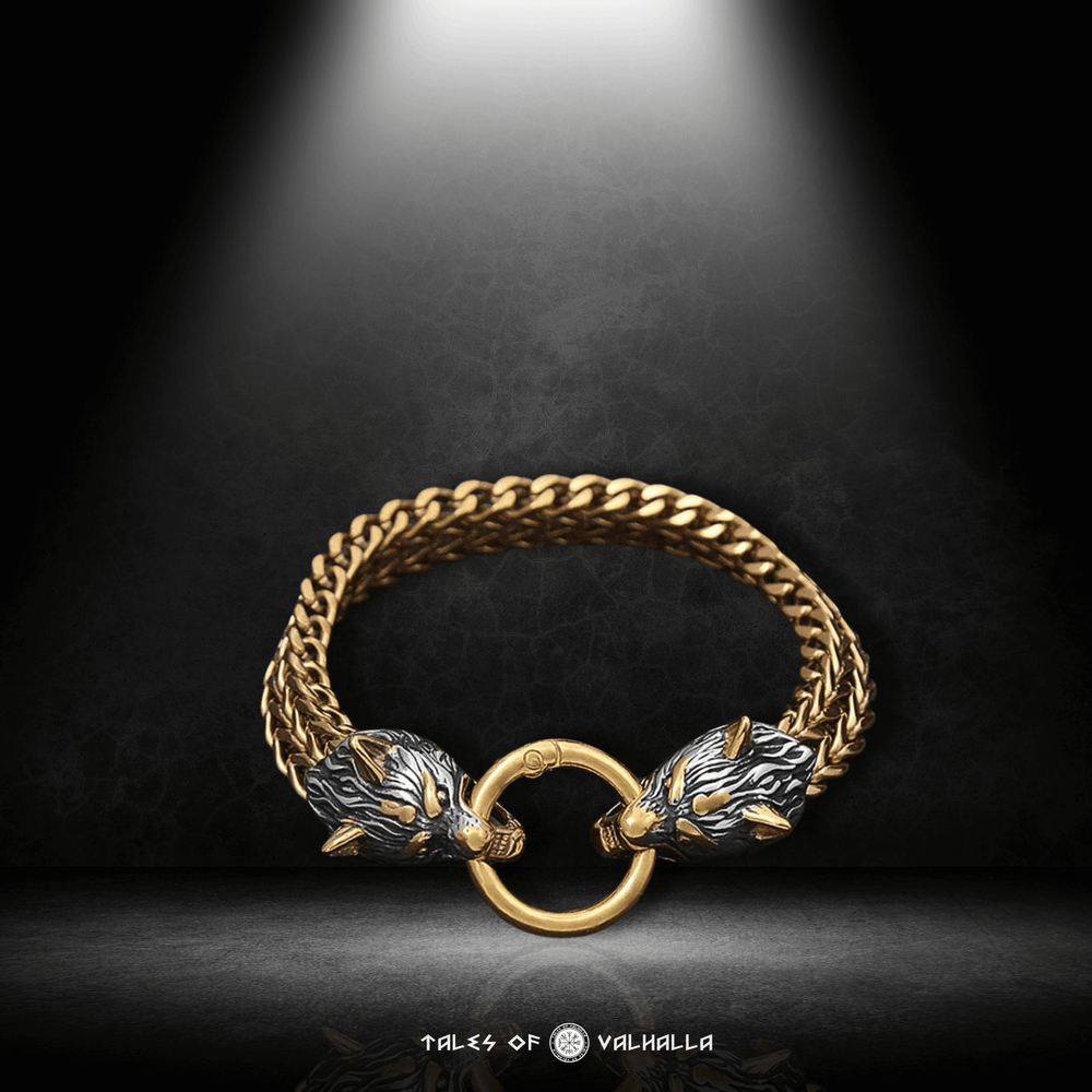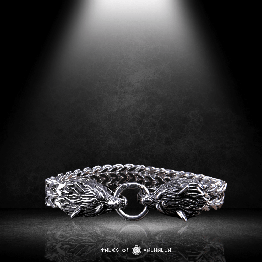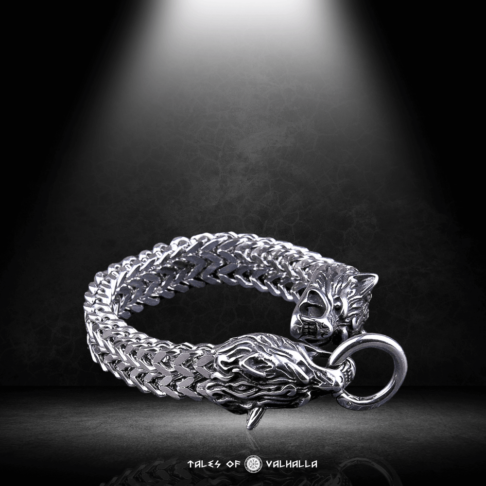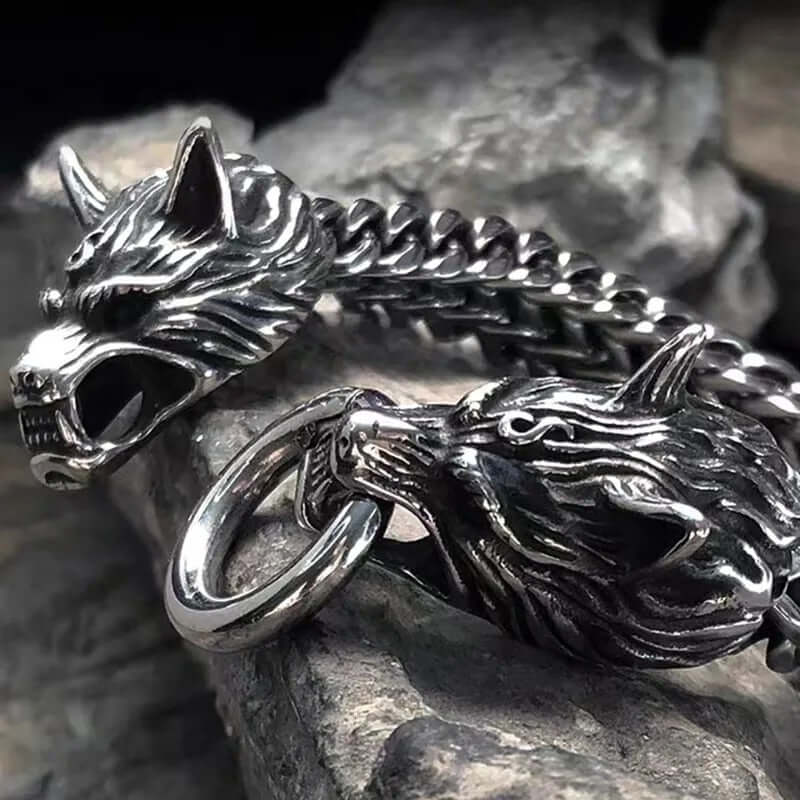 Fenrir's Bite Wolf Head Bracelets embody the fierce spirit of Fenrir, symbolizing freedom, rebelliousness, and ferocity in Norse mythology. Known for his role in Ragnarok, where he is destined to slay Odin, Fenrir represents the untamed forces that shape existence. Each bracelet tells the saga of Fenrir's struggle against the gods, bound by chains only broken by Gleipnir, and Tyr's sacrifice to restrain him.