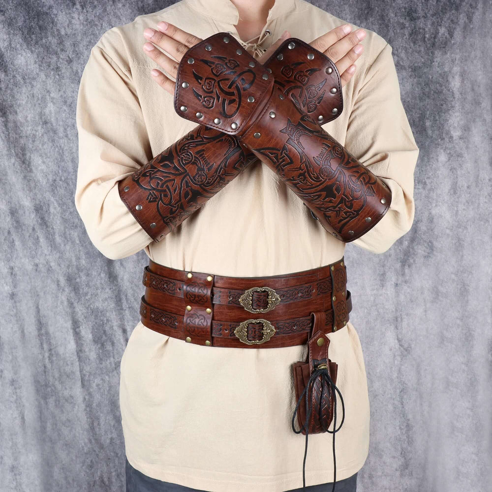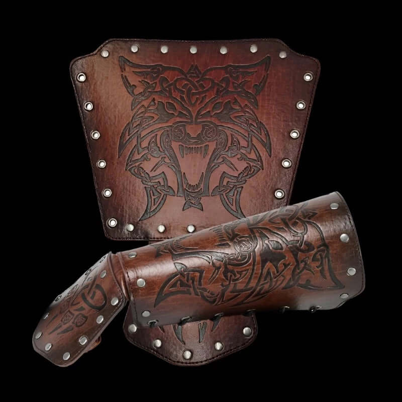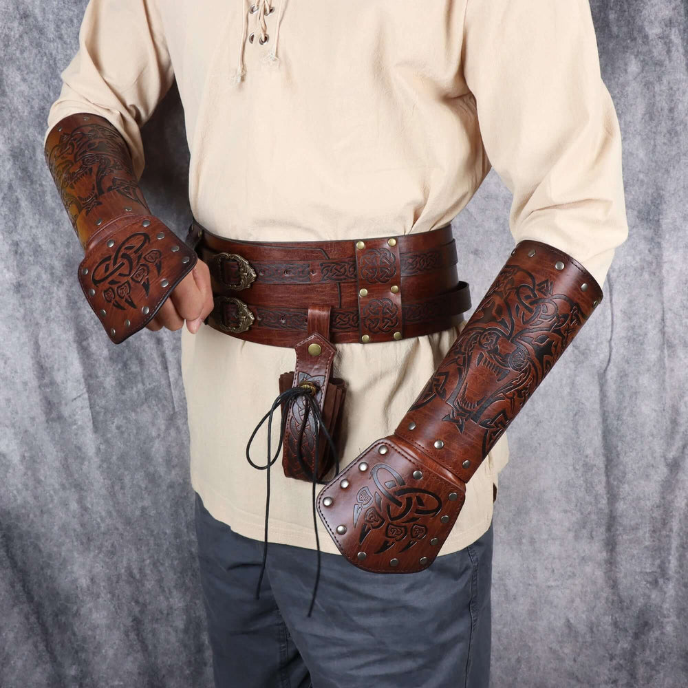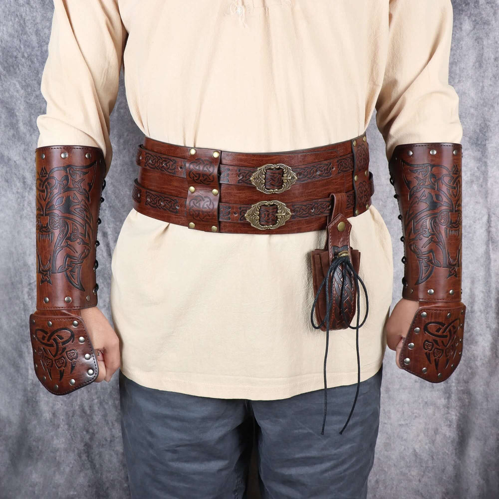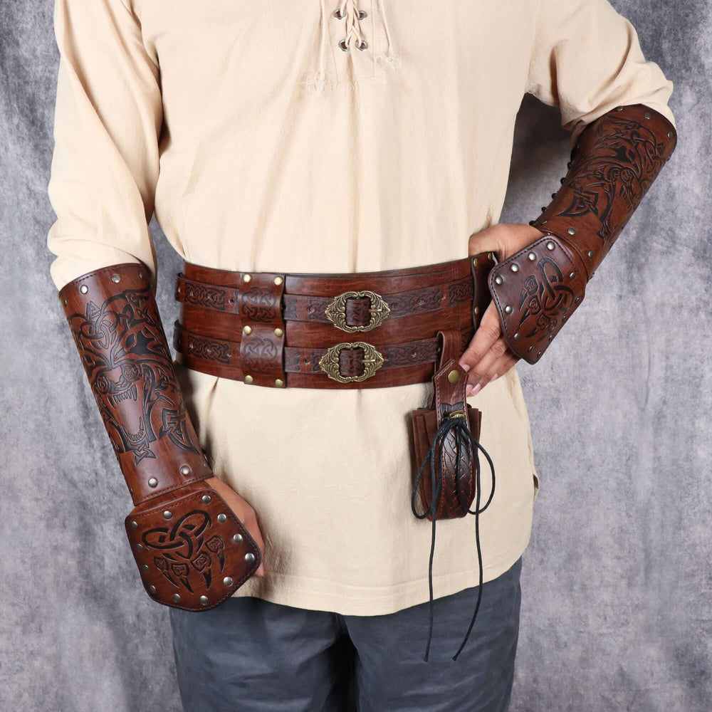 Leather Arm Gauntlets Wolf Belt Kit