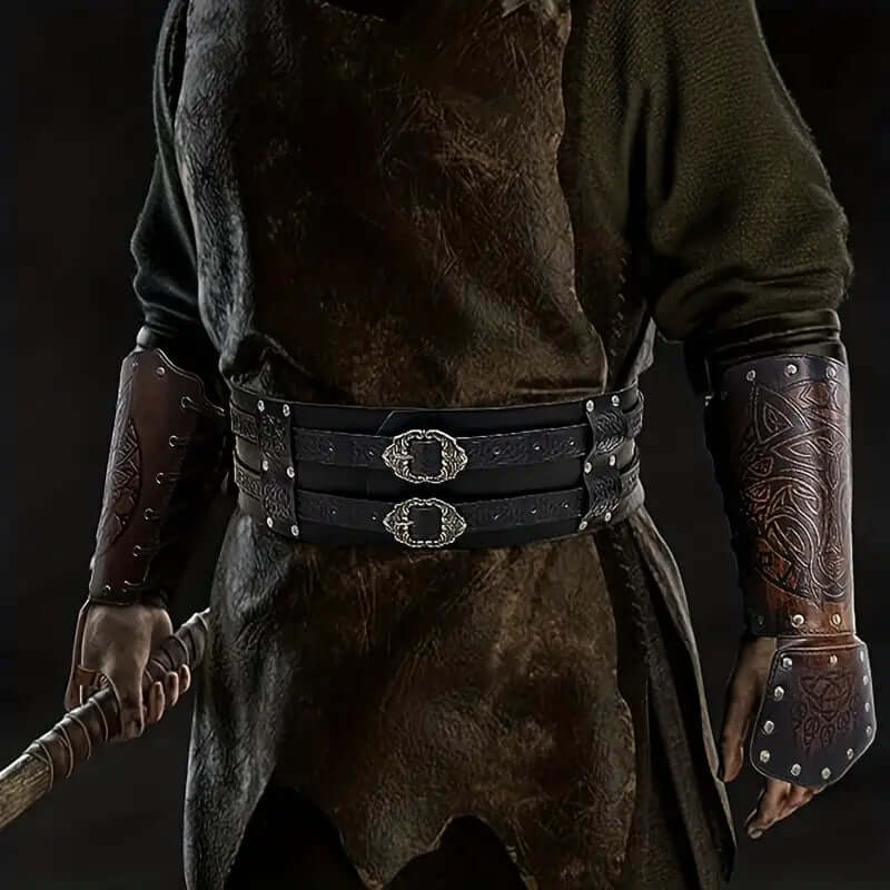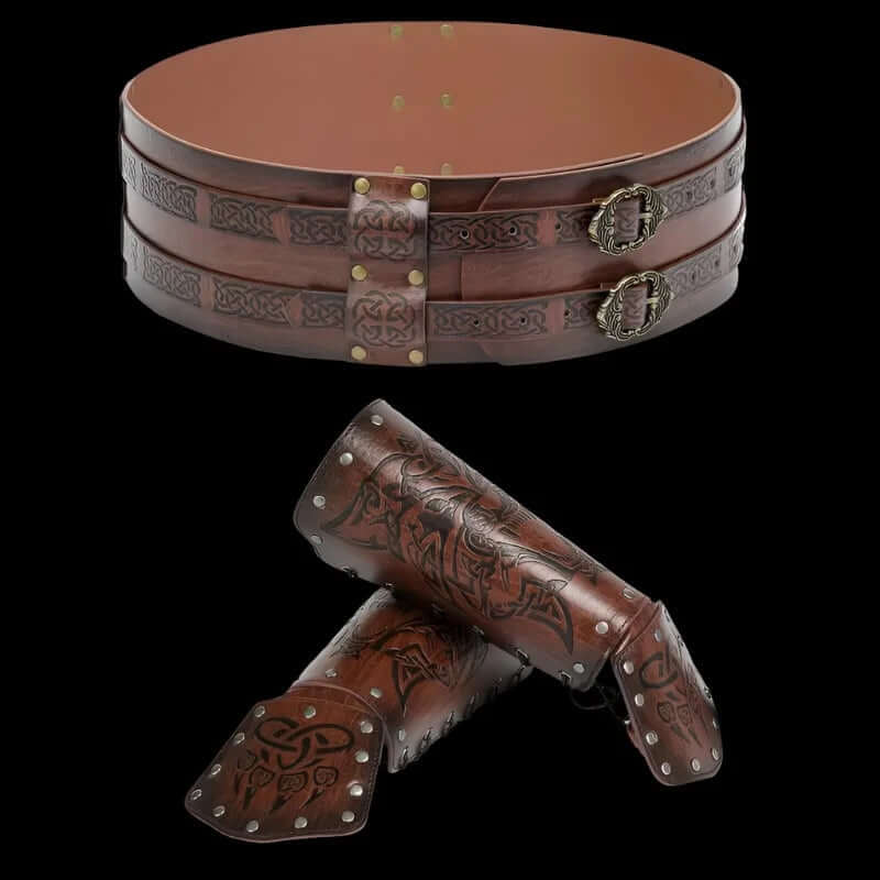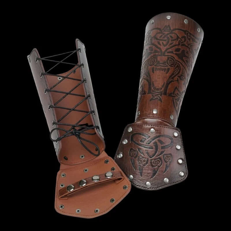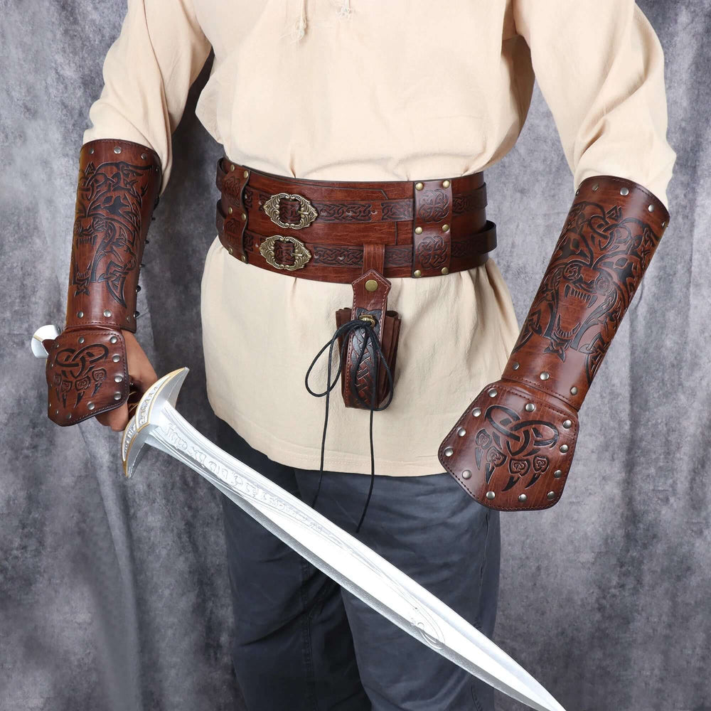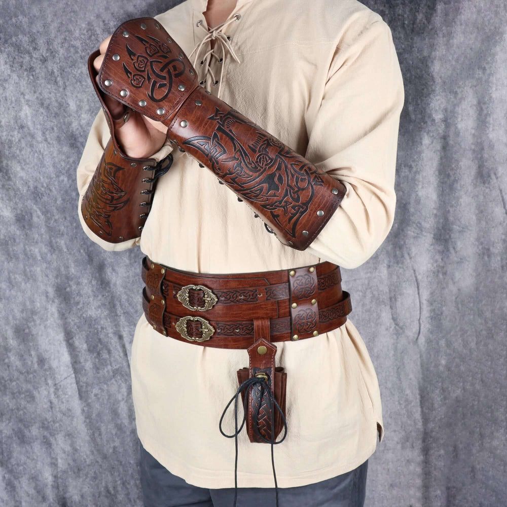 Leather Arm Gauntlets Wolf Belt Kit