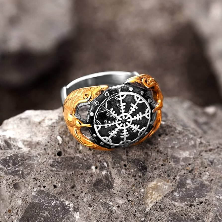 The Huginn and Muninn Helm of Awe Ring from Tales of Valhalla features the iconic ravens, Odin's loyal messengers. Intricate craftsmanship brings these mythical creatures to life, showcasing their detailed feathers. The ancient Helm of Awe symbol, known for its protective properties, forms a shield of strength around you, warding off negative energies and empowering you with confidence. As you wear this ring, you'll feel a deep connection to Odin's wisdom and the guidance of these legendary avian messengers.