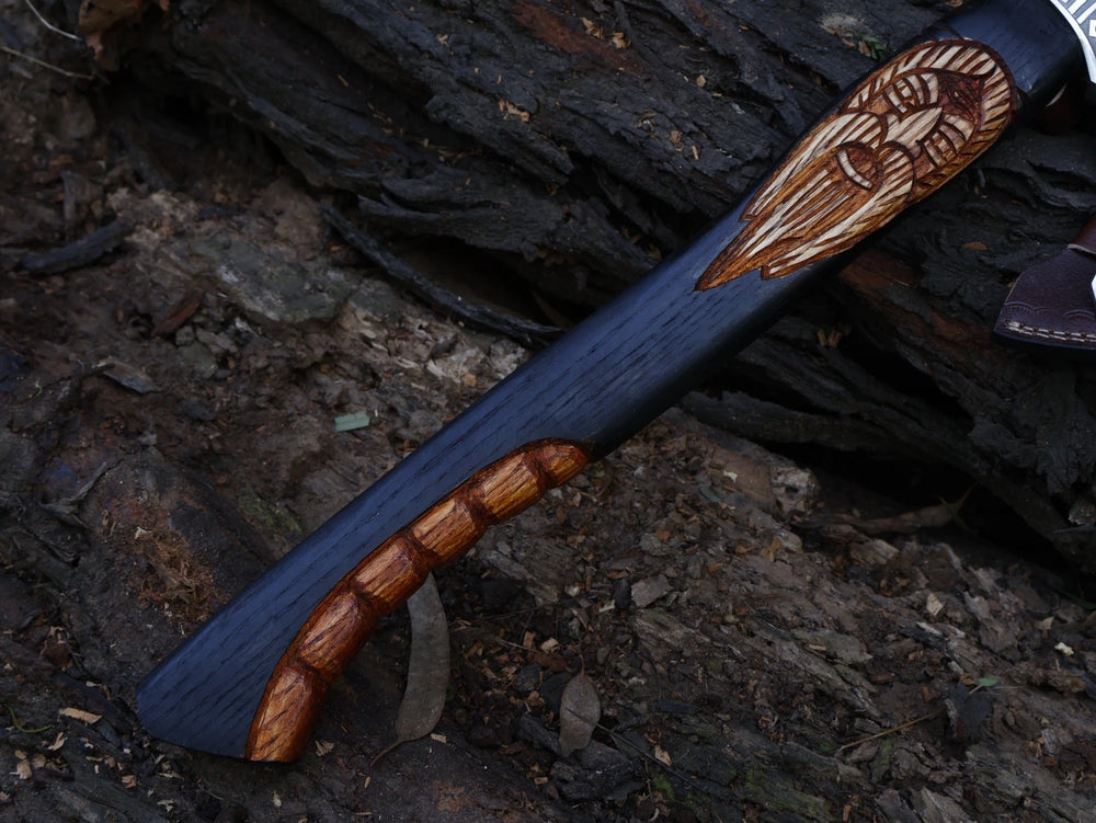 In the sagas, Odin’s chosen weapons were forged with intention, precision, and unwavering purpose. The darkened steel represents the ravens Huginn and Muninn, ever watchful, while the ash-wood haft echoes the World Tree Yggdrasil itself. This axe is crafted for those who carry the wisdom, endurance, and strength of the Allfather.