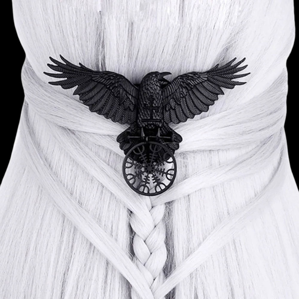 Envisioned to capture the essence of Odin's watchful eye, this exquisite hairpin features a stunning raven with its wings unfurled, symbolizing the all-seeing wisdom of the Allfather himself. Clutched firmly in its talons is the Helm of Awe, an ancient Norse symbol renowned for its protective qualities. Symbolizing courage, resilience, and invincibility, the Helm of Awe adorns the center of the hairpin, serving as a constant reminder of your inner fortitude and determination.