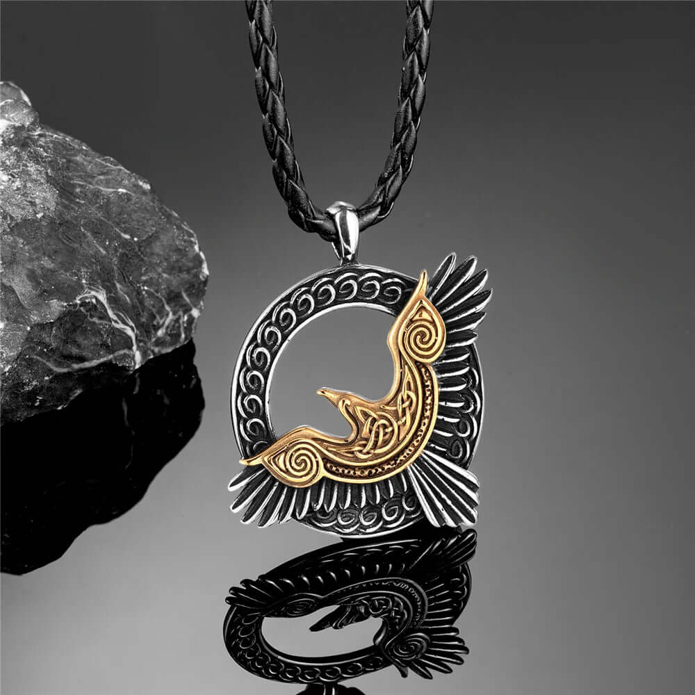 A tribute to the all-father and his loyal companions. Crafted with care, this necklace features an intricately designed pendant that showcases a raven in stunning detail. As you wear the Odin's raven necklace, you too can feel the power and wisdom of Odin coursing through you, guiding you on your path and helping you to overcome any obstacle.