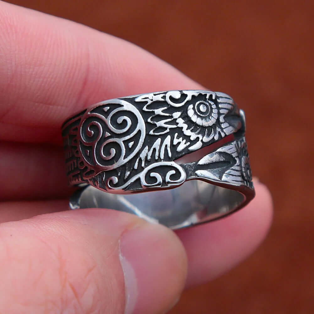 The Raven Viking Ring is an exceptional gift, embodying the mysticism and power of ravens in both Viking and Celtic cultures. Ravens, seen as Odin's eyes and ears in Viking lore, symbolize war and mysticism, while in Celtic mythology, they represent death and the bridge between worlds. Crafted from durable, hypoallergenic 316L stainless steel, this ring resists rust, tarnish, and fading.