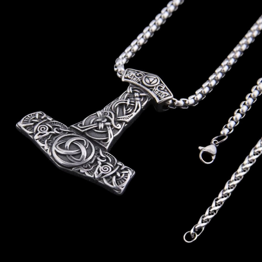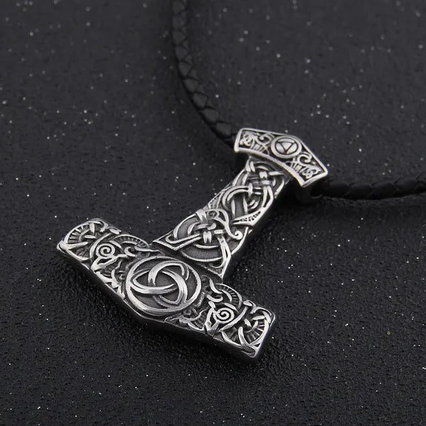 • Design: Intricately Detailed Mjölnir and Triquetra