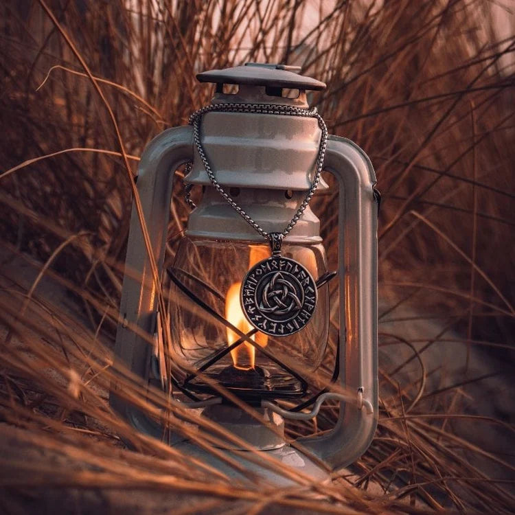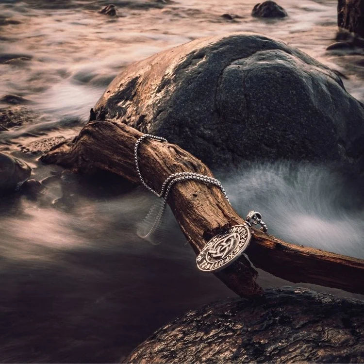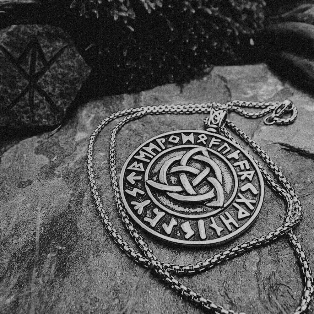 Embrace ancient traditions with our Triquetra and Runes Necklace. This elegant piece features the Triquetra symbol, representing the interconnectedness of life, eternity, and growth, interwoven with powerful runes for protection and wisdom. Crafted from high-quality stainless steel, the pendant hangs from a durable link chain, making it a versatile accessory for any occasion.