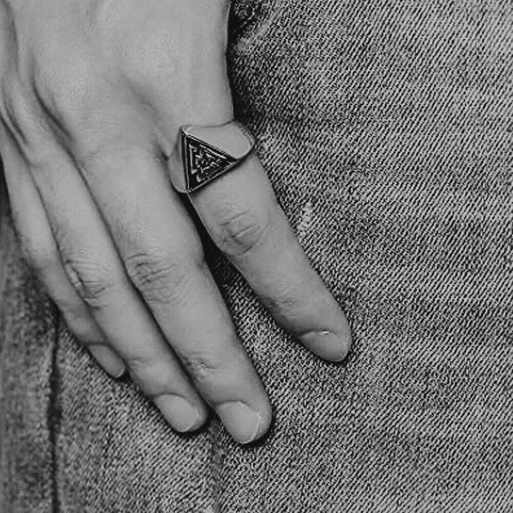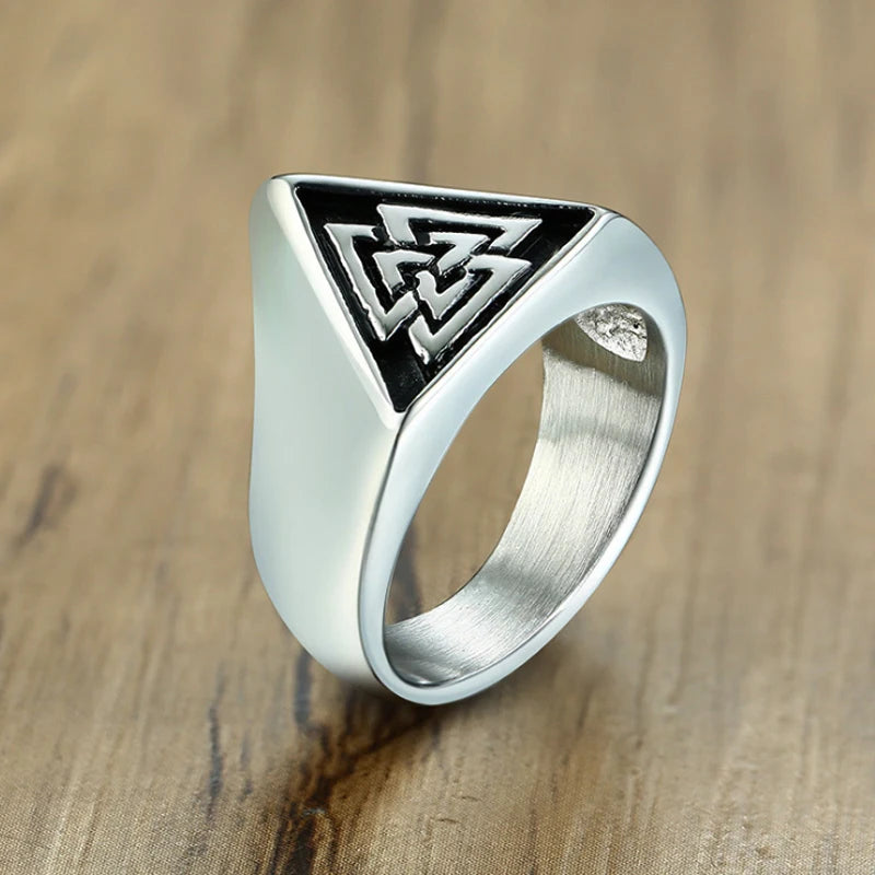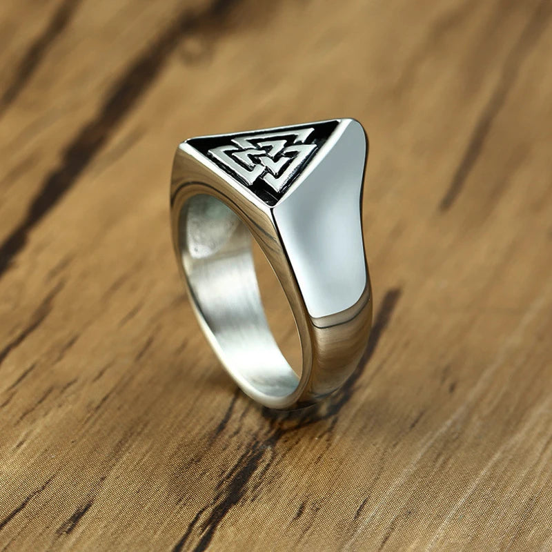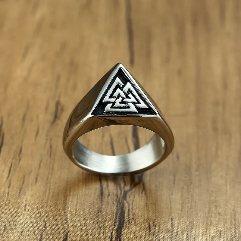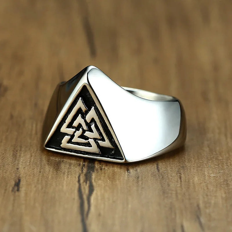 A solid ring with a powerful symbol, the Valknut! The Valknut is one of the most widely-discussed yet enigmatic of all of the symbols that appear in connection with Norse mythology and it's associated by many people with the Allfather, Odin.