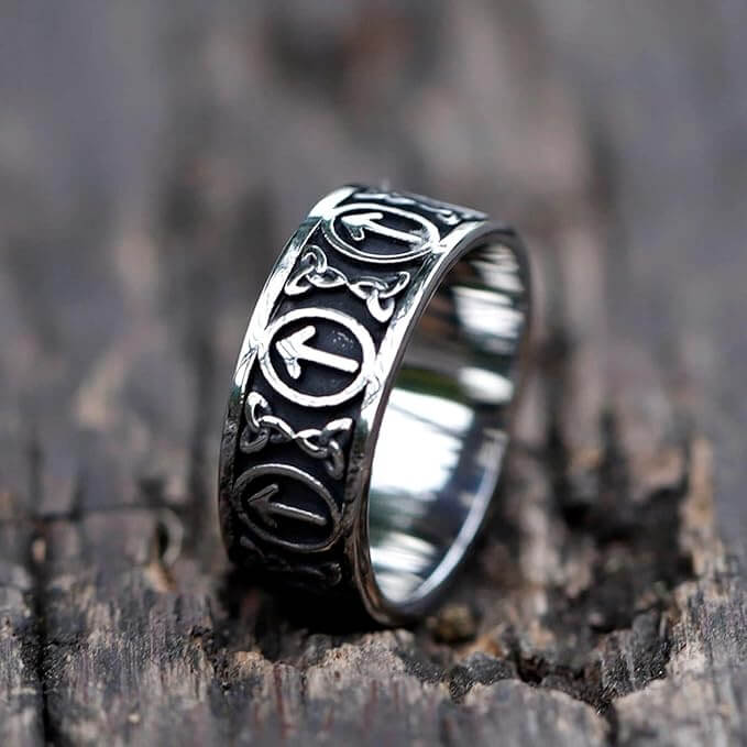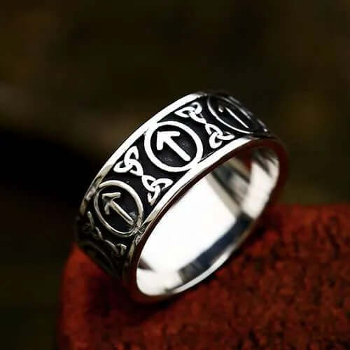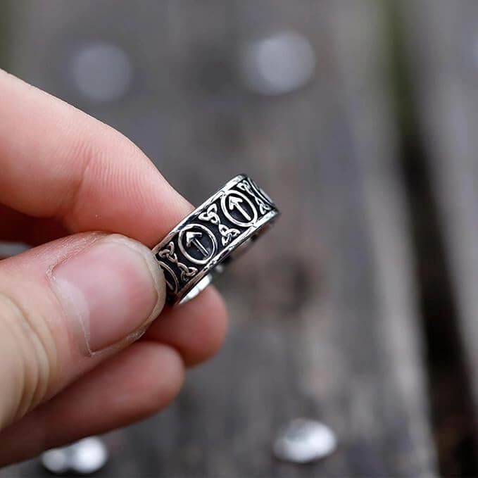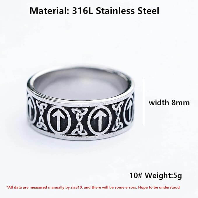 Introducing our Odin Viking Rune Celtic Knot Ring, crafted from premium steel with a polished finish. This durable, refined piece features intricate runes and Celtic knots, symbolizing strength, wisdom, and life's cycle. Perfect for history and mythology enthusiasts, it makes a unique, meaningful gift.