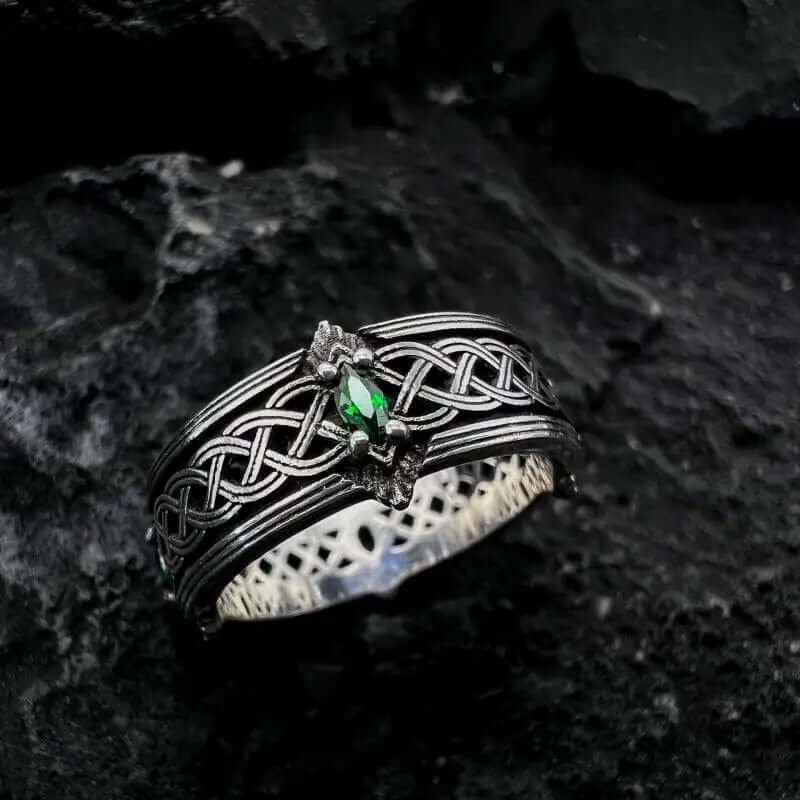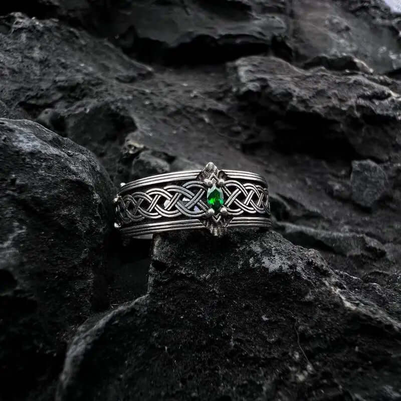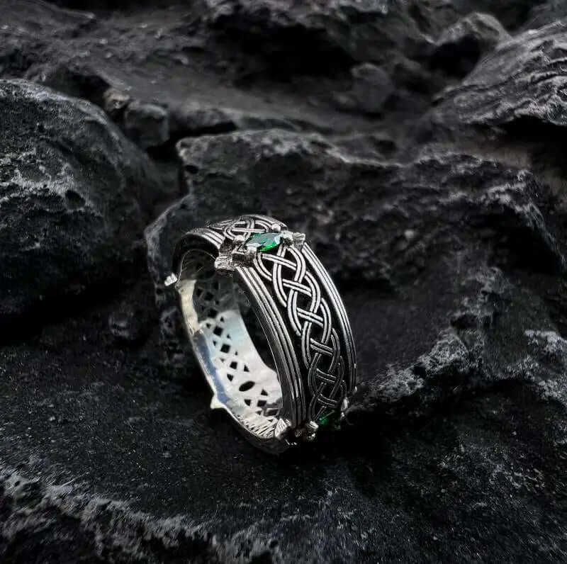 Introducing our Vintage Green Zircon Inlaid Celtic Knot Witch Knot Ring, crafted from premium copper for a unique and stylish charm that suits both men and women. This eye-catching accessory adds a touch of hip hop and rock to any outfit while symbolizing protection. With its intricate design and limited availability, it's a must-have for jewelry lovers. Don't miss out on this best-selling item—get yours now!