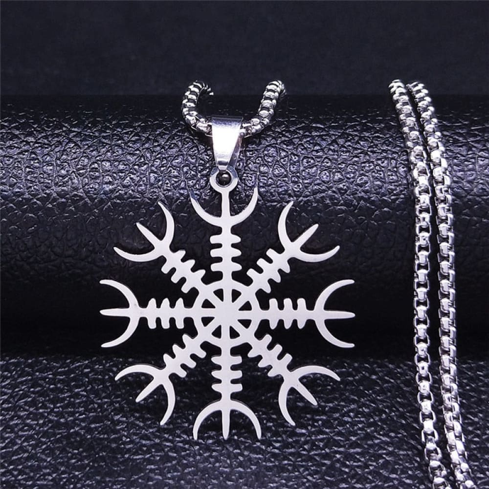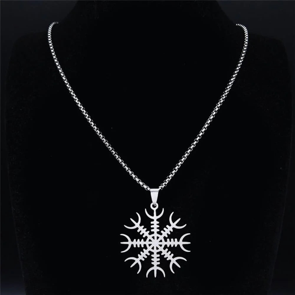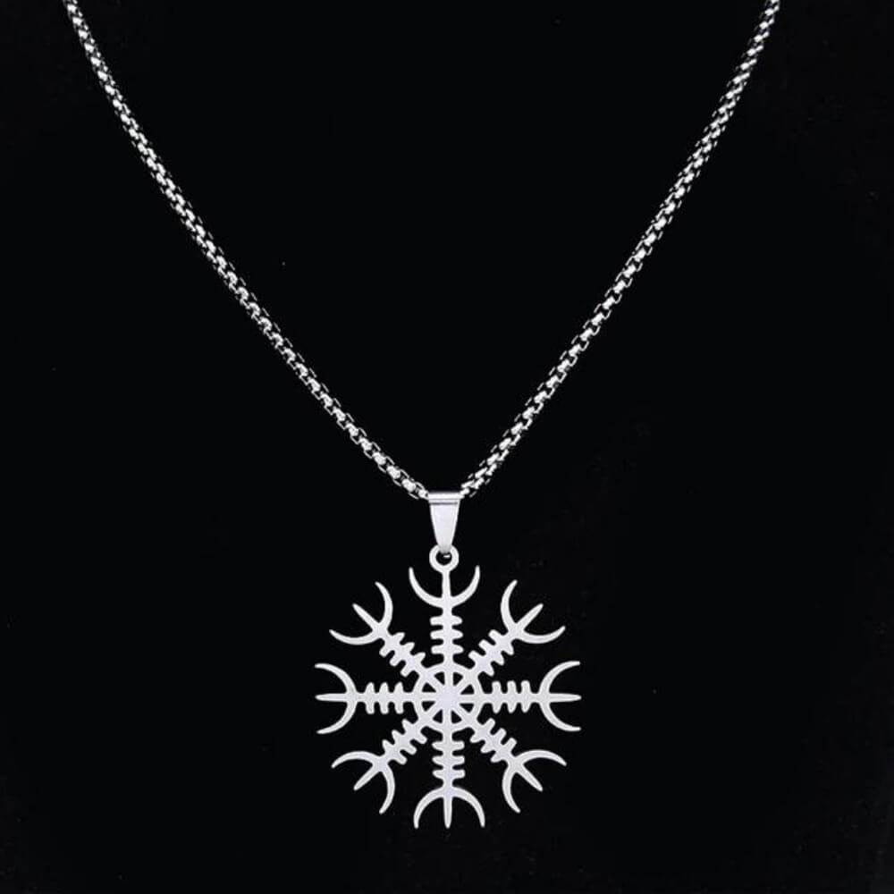 A minimalist necklace with an eternal Norse symbol, the Helm of Awe. The Helm of Awe invokes the protection of old Gods and symbolizes alignment with them.