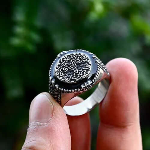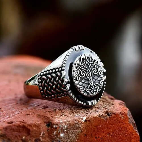 Crafted with precision and passion, this ring symbolizes strength, growth, and interconnectedness, featuring the intricately designed Yggdrasil, the mythical World Tree. Its detailing reflects ancient Viking craftsmanship and Norse heritage. Forged from high-quality materials, this ring ensures durability and tarnish resistance, making it a timeless piece like the legendary Yggdrasil.